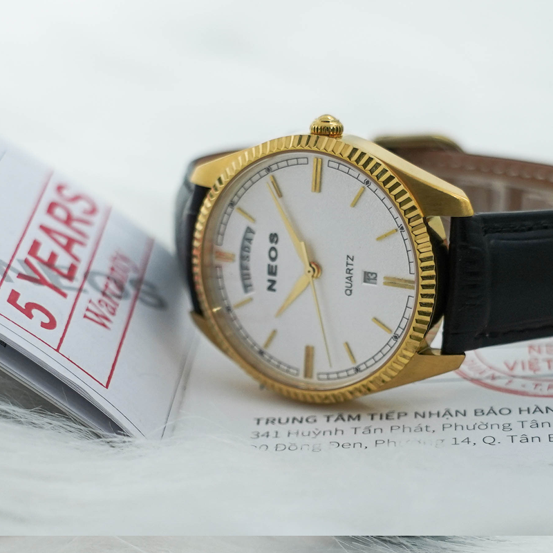 Đặc biệt, Neos N-40703m được bảo hành chính hãng trong 5 năm, đảm bảo sự yên tâm cho người sử dụng. Mỗi chiếc đồng hồ Neos đều được trang bị tem chống hàng giả của bộ công an dưới nắp lưng, cùng với sổ bảo hành có dấu mộc đỏ của Công ty Cổ phần Neos Việt Nam, khẳng định tính chính hãng và uy tín của sản phẩm.